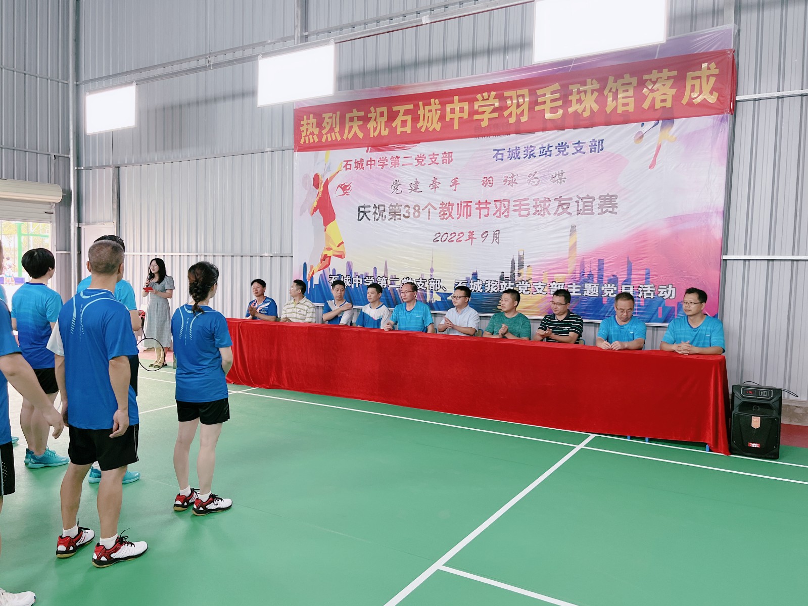 下午三點(diǎn),20多位參賽運(yùn)動(dòng)員以飽滿的精神狀態(tài),列隊(duì)來到石城中學(xué)羽毛球館,在石城漿站黨支部書記李云和石城中學(xué)黨委書記、校長(zhǎng)胡水波的共同宣布下,活動(dòng)拉開了序幕。