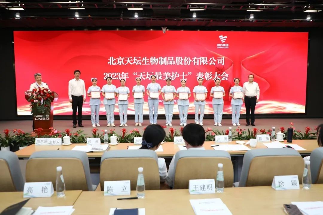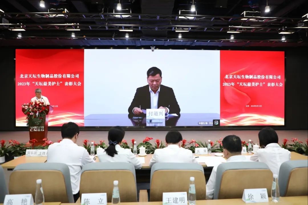 5月12日,2023年“天壇最美護士”表彰大會在北京舉行。中國生物黨委書記朱京津,天壇生物總經(jīng)理付道興,黨委書記劉亞娜,副總經(jīng)理何彥林,副總經(jīng)理兼財務(wù)總監(jiān)張翼,紀(jì)委書記高嵩出席會議。天壇生物常務(wù)副總經(jīng)理周東波主持會議。