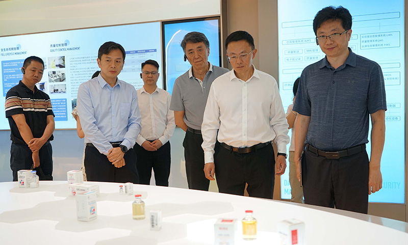 活動當(dāng)天,調(diào)研組一行現(xiàn)場參觀國藥天壇昆明血液制品智慧工廠展示廳和生產(chǎn)工藝模型,同時深入綜合車間生產(chǎn)一線,實地考察血漿自動篩檢系統(tǒng)、全自動包裝線和信息中心,并聽取國藥天壇昆明數(shù)字化、智能化工廠建設(shè)情況匯報。