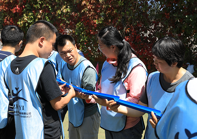 大家齊聚訓(xùn)練營(yíng),在工作人員的組織下開(kāi)始了1小時(shí)徒步熱身活動(dòng)。隨后,來(lái)自不同部門的員工隨機(jī)分為四組,各組成員分別設(shè)計(jì)了獨(dú)具特色的隊(duì)名、隊(duì)徽、口號(hào)和隊(duì)型,全身心地投入到“毛毛蟲(chóng)”、“雷霆戰(zhàn)鼓”、“流程管理”等趣味拓展活動(dòng)中。大家興致勃勃,在陽(yáng)光下?lián)]灑熱情,盡情享受著素質(zhì)拓展的暢快。小組成員間沒(méi)有了距離感,各自發(fā)揮智慧,齊心協(xié)力,朝著共同的目標(biāo)努力,在參與中感悟團(tuán)隊(duì)精神,領(lǐng)會(huì)合作雙贏的真諦。