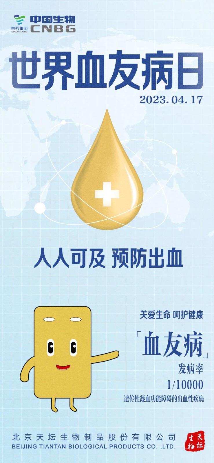 1989年世界血友病聯盟將每年4月17日設定為“世界血友病日”,旨在喚起全社會對血友病的認知和關注,并積極為血友病患者提供支持和幫助,今年4月17日是第35個“世界血友病日“,讓我們一起來了解血友病,關愛“玻璃人”。
